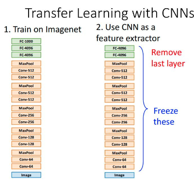 - 학습 데이터가 부족할 때, 데이터가 풍부한 상태로 사전학습 된 모델을 이용하여 새로운 데이터 학습에 적용시킨다.