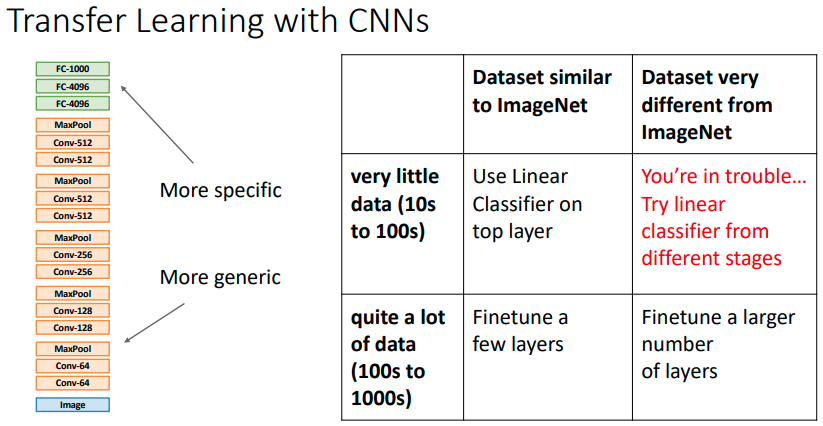 사전 학습 된 ImageNet 을 이용하고, 각자의 문제에 맞게 Fine-tuning 한다.