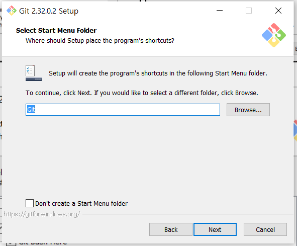 (3) 기본 설치 설정 (저는 기본 설정과 동일) > (Next) , (4) 시작 메뉴에서도 나타날 폴더 선택합니다. (Git폴더) > (Next)