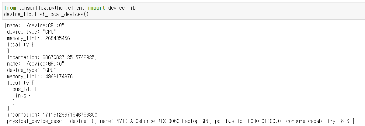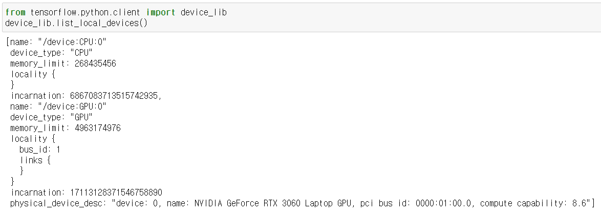 GPU가 잘 잡히는지 확인하기 위해 위의 코드를 실행해 보았을 때,