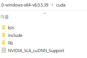 압축 파일을 풀게 되면 cuda 파일에 왼쪽 사진과 같이 4개의 파일이 있다.