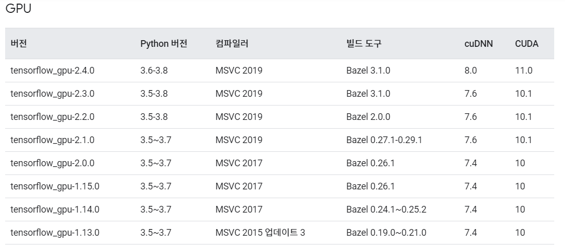 tensorflow-gpu 2.4.0 버전에 맞게 설치할 예정이다.