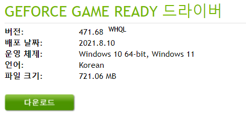 컴퓨터 환경에 맞는 NVIDIA 드라이버를 설치한다. 확인하는 링크