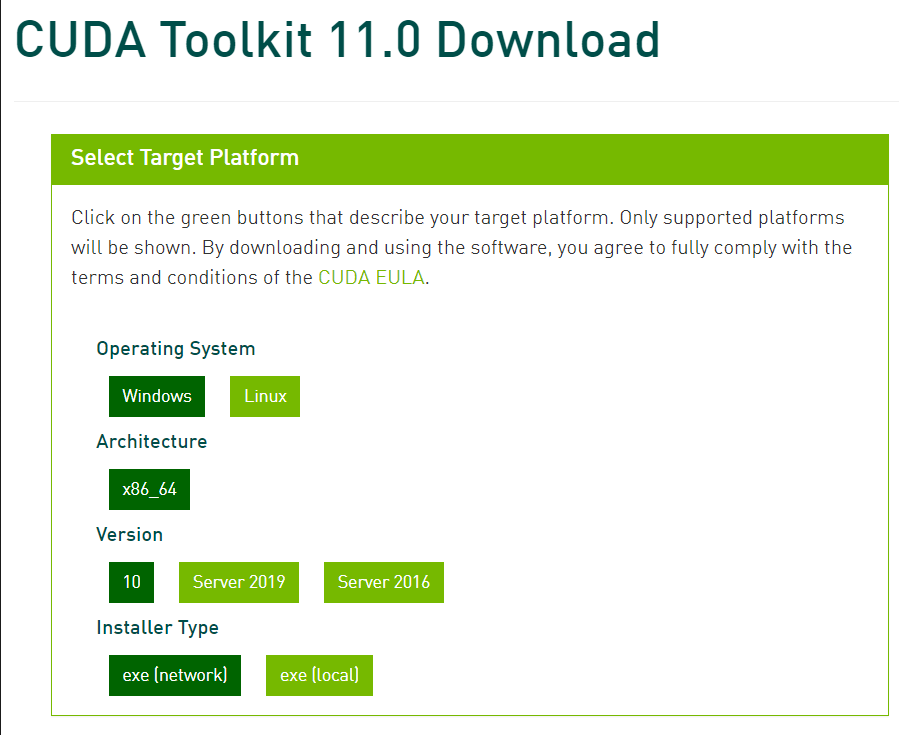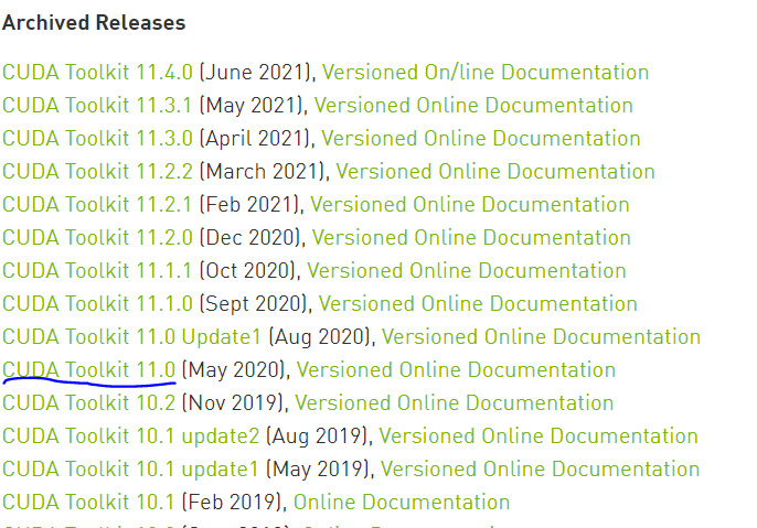 tensorflow-gpu=2.4.0에 해당하는, cuDNN=8.0 CUDA=11.0을 설치할 예정이다.
