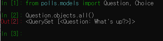 >> 만들어진 polls의 models에는 Choice와 Question이 있다. Choice와 Question을 사용할 것이니 우선 추가 하겠다.