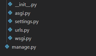 >해당 폴더에 [프로젝트명]의 폴더가 생성되며 장고 프레임워크 기반의 문서가 자동으로 생성된다.
